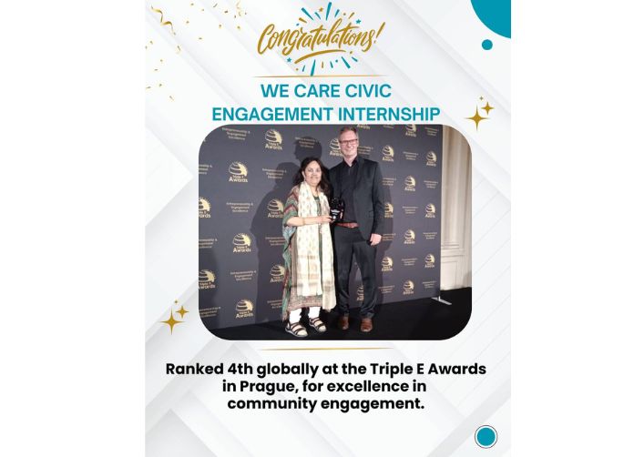 NMIMS has received international recognition as its We Care: Civic Engagement Internship secured 4th place globally at the Triple E Global Awards in Prague. Competing with over 40 top universities worldwide in the Societal Engagement Project category, this honour underscores NMIMS’s commitment to social responsibility, innovation, and student-driven impact.