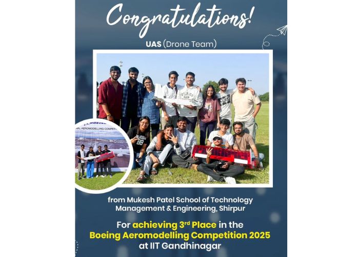 SVKM’s NMIMS Shirpur celebrates this achievement and looks forward to seeing the team scale even greater heights in upcoming national and international aeromodelling forums.