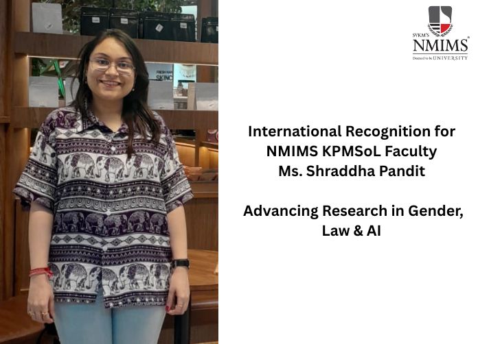 SVKM’s NMIMS Kirit P. Mehta School of Law (KPMSoL), Mumbai, is proud to announce the international academic achievements of Ms. Shraddha Pandit, Assistant Professor of Law and Ph.D. Candidate, who has recently been invited as a speaker and had her research selected for publication at global platforms.