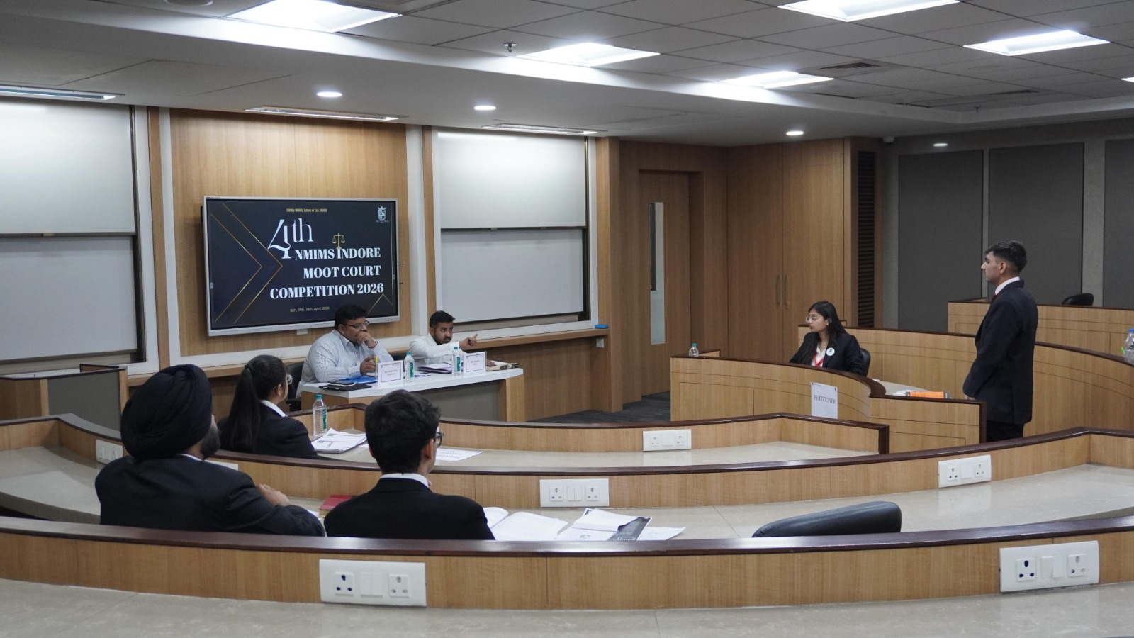 The Offline Rounds commenced on 16th April 2026 with the formal welcome of participating teams along with Draw of lots and memorial exchange of Quarter-Final rounds. The competition progressed to the Quarter-Final and Semi-Final Rounds on 17th April 2026, which witnessed intense courtroom exchanges and high standards of advocacy. The Quarter-Final Rounds were adjudicated by Mr. Shashwat Seth (Advocate, High Court of Madhya Pradesh, Indore), Mr. Devaasheesh Dubey (Advocate, High Court of Madhya Pradesh, Indore), Ms. Anuja Pethia (Advocate-on-Record, Supreme Court of India), Mr. Rishi Singh Gautam (Advocate-on-Record), Mr. Arihant Nahar (Advocate, High Court of Madhya Pradesh, Indore), Mr. Sarthak Nema (Advocate-on-Record, Supreme Court of India), Mr. Jaydip Patil (Advocate-on-Record, Supreme Court of India), and Mr. Martand Nemana (Assistant Manager, Unilever).
